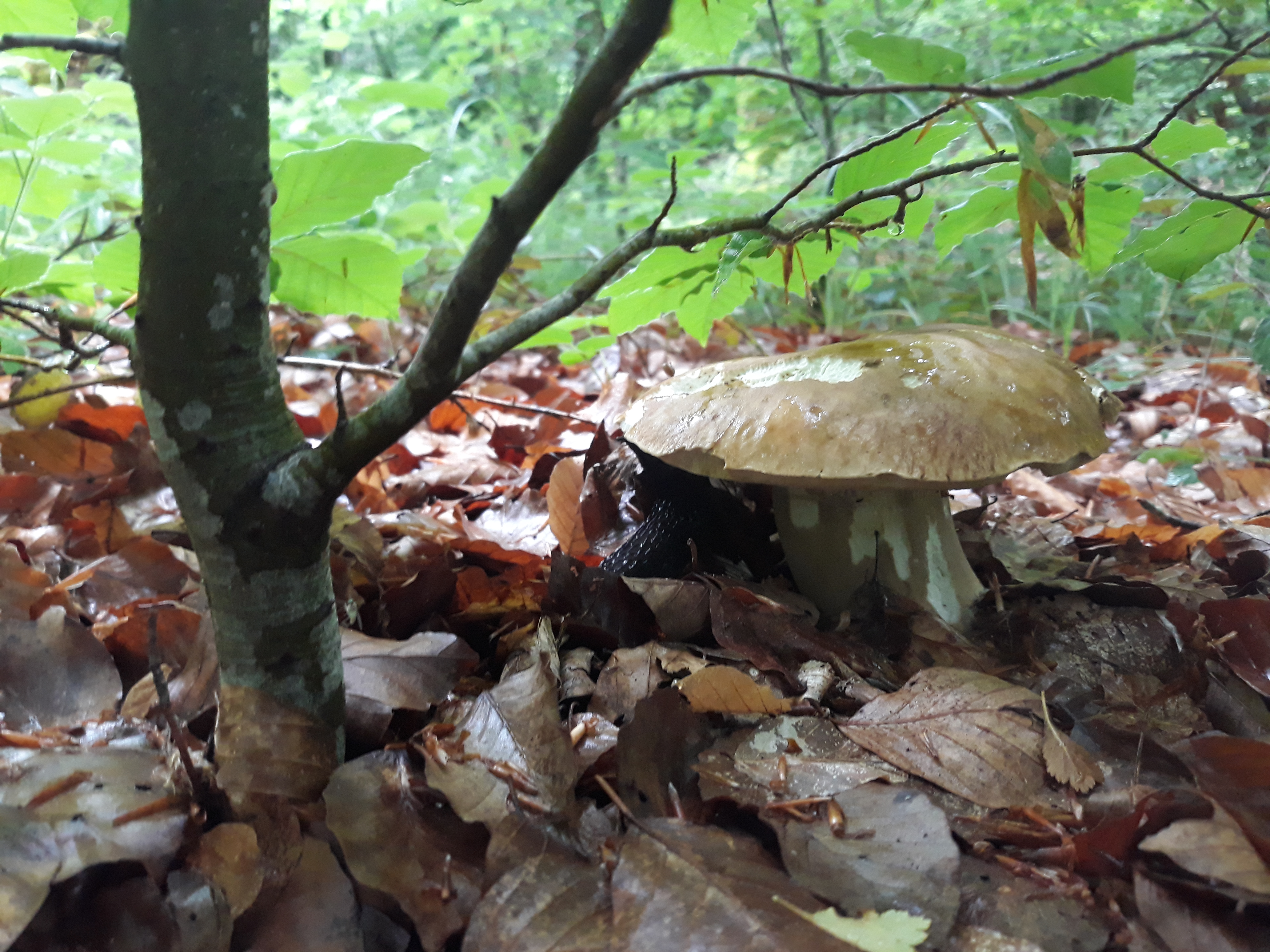 El jueves de la semana pasada tuvimos una tormenta de veranito chula chula, con granizo que dejó 7 litros en Arraitz pueblo. Los días posteriores se han mantenido algo nublados y con chirimiri. Y... aunque hoy ha sido uno de esos días en que acabas mojado caminando por los hayedos y robledales, el suelo no ha acabado de empapar lo suficiente. La producción micológica es muy escasa en cuanto a cantidad y variedad de especies, pero algunas setillas se han dejado ver (la seta más abundante y de la que se han visto bastantes ejemplares, Phallus impudicus, preciosos).
